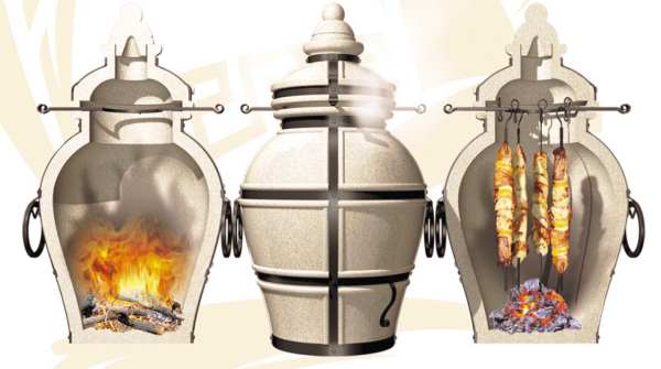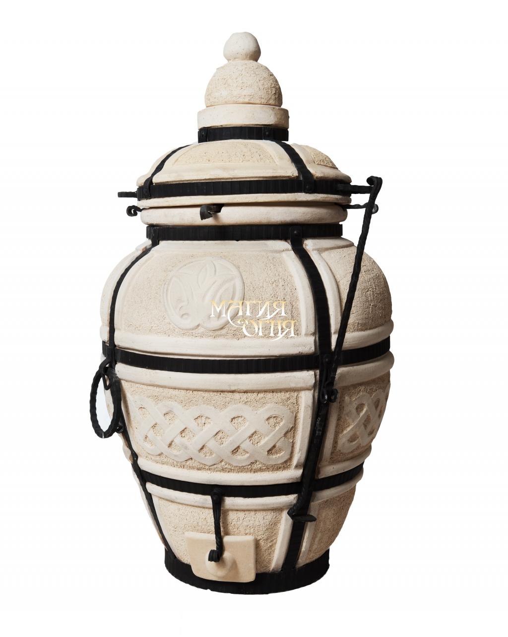 Этот тандыр - настоящий лидер среди печей-жаровен, способный одновременно обслуживать большую компанию благодаря вместительности и комплекту шампуров. Его величественный вид и солидный вес придают праздничную атмосферу любому месту, где он установлен.